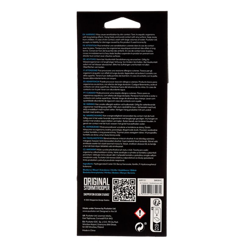https://www.puckator.co.uk/airf151-blueberry-the-original-stormtrooper-helmet-air-freshener.htmlAIRF151Blueberry The Original Stormtrooper Helmet Air Freshener<p>Blueberry The Original Stormtrooper Helmet Air Freshener</p><ul><li><strong>Material:</strong> Card, Polypropylene, Elastic, Absorbant Paper, and Fragrance</li><li><strong>Fragrance:</strong> Blueberry</li><li><strong>Safety Information:</strong> Keep away from children. Full safety and fragrance information is shown on the product packaging. Do not rest or lean against any surface as the oils in the air freshener can cause staining or damage.</li><li><strong>License Information:</strong> This product is fully licensed and can be sold worldwide except in the USA. If you are ordering for delivery to the USA, please do not attempt to purchase this product, if you do the product will be removed from your order. If you require further information please contact our customer service team.</li></ul><p><strong>Product Resources:</strong></p><ul><li><strong>Want to find out more about purchasing from Puckator?</strong> Then read our <a href="/advice-centre" target="_blank" title="Puckator UK Customer Information Guide">customer information guide.</a></li><li><strong>Need more information on air fresheners?</strong> Visit our resource centre and browse our <a href="https://www.puckator.co.uk/air-fresheners-guide" target=_blank" title="Hints and Tips Guide to Buying and Selling Air Fresheners from Puckator UK"> hints and tips guide</a> to buying and selling air fresheners.</li></ul>https://www.puckator.co.uk/media/catalog/product/A/I/AIRF151_001_1708618429.jpg0.46instock0.460.4600Puckator000https://www.puckator.co.uk/media/catalog/product/A/I/AIRF151_001_1708618429.jpg1780815876/Car Air Fresheners/The Original Stormtrooper/Temporary Sale - FR/Back in stock EU2022-10-28T12:30:05+0000No