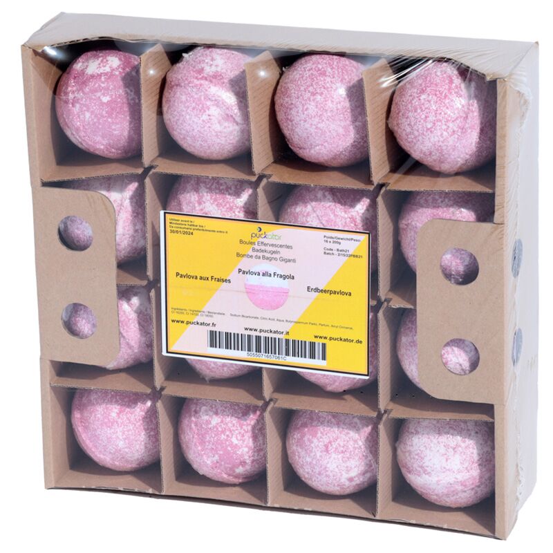 https://www.puckator.co.uk/bath21-strawberry-pavlova-bath-bombs.htmlBATH21Strawberry Pavlova Bath Bombs<p>Strawberry Pavlova Bath Bombs</p><ul><li><strong>Material:</strong> Natural Salts and Essential Oils</li><li><strong>Product Ingredients:</strong> Full ingredients and allergen information can be found on the product packaging.</li><li><strong>Bath Bomb Weight:</strong> 200g Approx</li><li><strong>Vegan:</strong> Yes</li><li><strong>Palm Oil Free:</strong> Yes</li><li><strong>Gluten Free:</strong> Yes</li><li><strong>Cruelty Free:</strong> Yes</li><li><strong>Product Information: </strong> Each bath bomb is made in the UK and comes individually shrink-wrapped. The batch and best before date can be found on the outer tray label.</li><li><strong>CPNP:</strong> UKCP-77648792/EU-3571788</li><li><strong>Product Labels</strong> - Need additional labels for this line? <a href="/media/wysiwyg/uk_soap_labels/BATH21.pdf" target="_blank" title="Download BATH21 Label Sheet">Download our BATH21 label sheet.</a></li></ul><p><strong>Product Resources:</strong></p><ul><li><strong>Want to find out more about purchasing from Puckator?</strong> Then read our <a href="/advice-centre" target="_blank" title="Puckator UK Customer Information Guide">customer information guide.</a></li><li><strong>Need more information on bath bombs?</strong> Visit our resource centre and browse our <a href="https://www.puckator.co.uk/soap-bath-bombs-guide" target=_blank" title="Puckator UK Bath Bombs and Soaps Product Buying Guide">bath bombs product buying guide</a> full of useful tips and information on purchasing and selling our products.</li></ul><p><img src="{{media url="wysiwyg/Symbols/CRUELTYFREE.jpg";}}" alt="Cruelty Free Packaging Symbol|Puckator" width="100" height="100"><img src="{{media url="wysiwyg/Symbols/PALMOILFREE.jpg";}}" alt="Palm Oil Free Packaging Symbol|Puckator" width="100" height="100"><img src="{{media url="wysiwyg/Symbols/VEGAN.jpg";}}" alt="Vegan Packaging Symbol|Puckator" width="100" height="100"></p>https://www.puckator.co.uk/media/catalog/product/B/A/BATH21_001_1660124842.jpg1.12instock1.121.1200Puckator000https://www.puckator.co.uk/media/catalog/product/B/A/BATH21_001_1660124842.jpg10187101891019110193101951019710201102071021214175/Bath Bombs & Fizzes/Eco-Friendly Beauty Gifts/Temporary Sale - FR2012-06-01T01:00:00+0000No