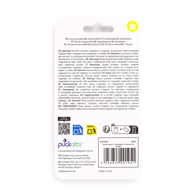 https://www.puckator.co.uk/bopen05-london-guardsman-pvc-bottle-opener.htmlBOPEN05London Guardsman PVC Bottle Opener<p>London Guardsman PVC Bottle Opener</p><ul><li><strong>Material: </strong>PVC, Metal (Plated Steel)</li><li><strong>Magnetic: </strong>Yes</li></ul><p><strong>Product Resources:</strong></p><ul><li><strong>Want to find out more about purchasing from Puckator?</strong> Then read our <a href="/advice-centre" target="_blank" title="Puckator UK Customer Information Guide">customer information guide.</a></li><li><strong>Need more information on kitchen and dining accessories?</strong> Visit our resource centre and browse our <a href="https://www.puckator.co.uk/kitchen-dining-buying-guide" target=_blank" title="Puckator UK Buying Guide to Puckator's Kitchen and Dining Accessories">kitchen and dining accessories product buying guide</a> full of useful tips and information on purchasing and selling our products.</li></ul>https://www.puckator.co.uk/media/catalog/product/B/O/BOPEN05_001_1773685831.jpg1.25instock1.251.2500Puckator000https://www.puckator.co.uk/media/catalog/product/B/O/BOPEN05_001_1773685831.jpg160671606816072/Kitchen Decorations & Accessories/London & UK Souvenirs/British & London Souvenir Gifts/New/Back in stock2025-12-01T09:43:34+0000Yes