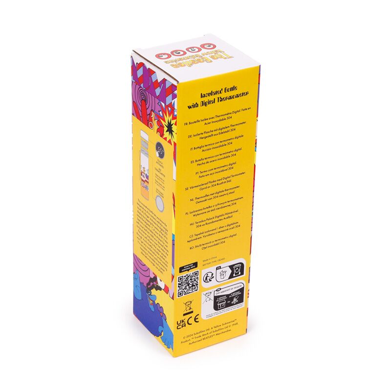 https://www.puckator.co.uk/bot136-the-beatles-yellow-submarine-hot-cold-digital-thermometer-bottle.htmlBOT136The Beatles Yellow Submarine Hot & Cold Digital Thermometer Bottle<p>The Beatles Yellow Submarine Hot & Cold Digital Thermometer Bottle</p><ul><li><strong>Material:</strong> Stainless Steel, Polypropylene and Silicone</li><li><strong>Food Safe:</strong> Yes</li><li><strong>Dishwasher Safe:</strong> No</li><li><strong>Reusable:</strong> Yes</li><li><strong>Volume:</strong> 450ml</li><li><strong>BPA Free:</strong> Yes</li><li><strong>Digital Temperature Display:</strong> Touch the top with your finger to give a digital readout of the temperature inside. The battery inside the lid is a fixed unit that is not replaceable, however it will last for approximately 18000 uses.</li><li><strong>Product Information:</strong> Insulated design suitable for hot and cold drinks. Thermal design keeps liquids cold for up to 24 hours or warm for up to 6 hours. There is a removable tea strainer that sits in the top for loose tea leaves. Also comes with a handy strap.</li><li><strong>License Information:</strong> This product is fully licensed and can be sold worldwide.</li></ul><p><strong>Product Resources:</strong></p><ul><li><strong>Want to find out more about purchasing from Puckator?</strong> Then read our <a href="/advice-centre" target="_blank" title="Puckator UK Customer Information Guide">customer information guide.</a></li><li><strong>Need more information on water bottles and flasks?</strong> Visit our resource centre and browse our <a href="https://www.puckator.co.uk/water-bottles-thermal-drinks-buying-guide" target=_blank" title="Puckator UK Reusable Water Bottles, Cups & Thermal Flasks Buying Guide">water bottles and flasks product buying guide</a> full of useful tips and information on purchasing and selling our products.</li><li><strong>Battery & Electrical Resources:</strong> Explore our comprehensive battery and electrical product resources, including essential safety guidelines and tips for responsible disposal. <a href="https://www.puckator.co.uk/battery-regulations-safe-disposal" " target=_blank" title="Battery & Electrical Regulations & Safety Information | Puckator"> Click here</a> to learn more.</li></ul><p><img src="{{media url="wysiwyg/Symbols/BATTERIESINCLUDED.jpg";}}" alt="Batteries Included Packaging Symbol|Puckator" width="100" height="100"><img src="{{media url="wysiwyg/Symbols/COOL24.jpg";}}" alt="Cool 24 Hrs Packaging Symbol|Puckator" width="100" height="100"></p>https://www.puckator.co.uk/media/catalog/product/B/O/BOT136_001_1772724559.jpg6.65instock8.456.65211.8Puckator000https://www.puckator.co.uk/media/catalog/product/B/O/BOT136_001_1772724559.jpg16787174871768418155/Yellow Submarine/The Beatles/Water Bottles & Flasks/Thermal & Insulated Bottles & Flasks/Wholesale Best Price Offer - Limited Time Promotion/Seasonal Clearance2021-03-08T09:55:11+0000No