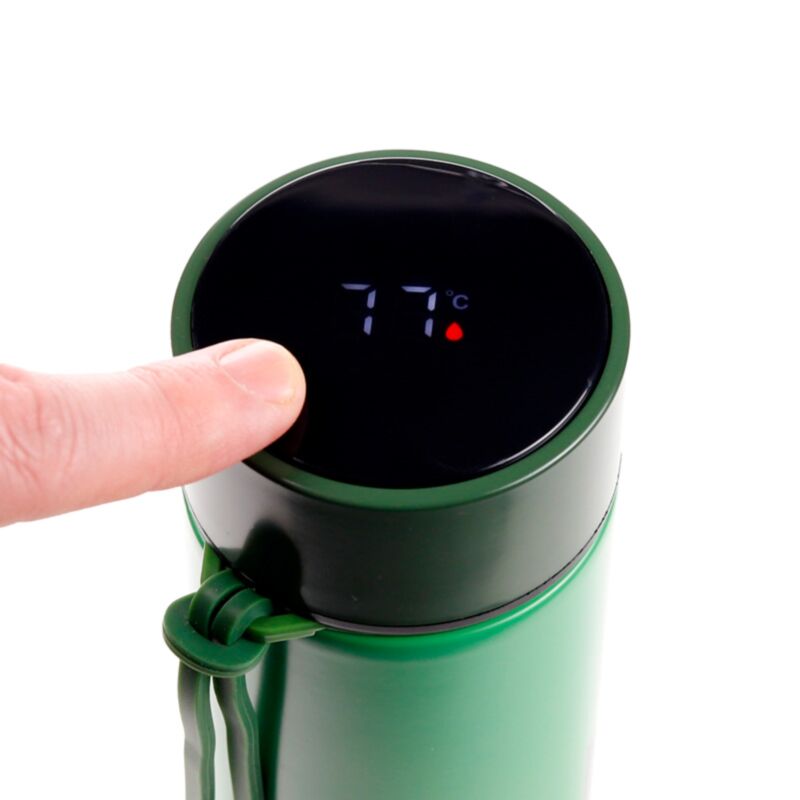 Digital Temperature Display: Touch the top with your finger to give a digital readout of the temperature inside. The battery inside the lid is a fixed unit that is not replaceable, however it will last for approximately 18000 uses.