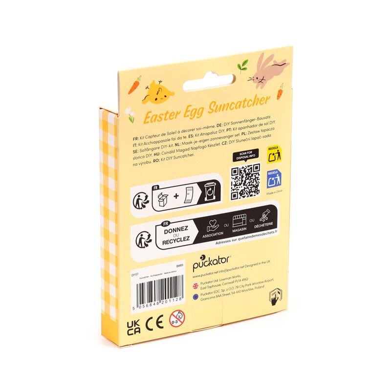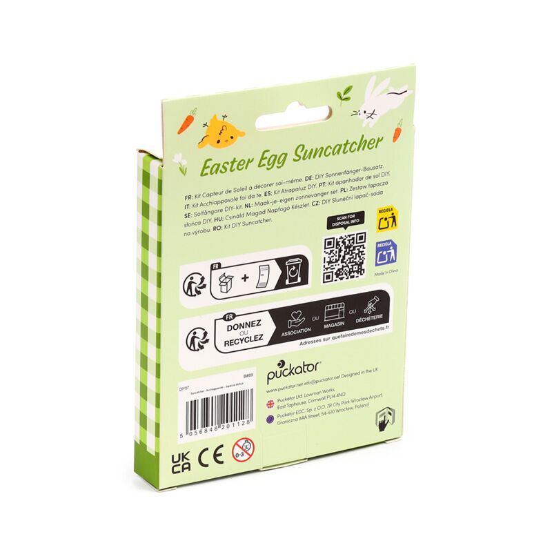 https://www.puckator.co.uk/diy07-springtime-easter-egg-paint-your-own-diy-suncatcher.htmlDIY07Springtime Easter Egg Paint Your Own DIY Suncatcher<p>Springtime Easter Egg Paint Your Own DIY Suncatcher</p><ul><li><strong>Material:</strong> Polystyrene (Suncatcher), Paint (Pigment), Polypropylene (Brush), Polyester (String)</li><li><strong>Set Contains:</strong> Plastic suncatcher, string, paint brush & 3 paints.</li><li><strong>CE/UKCA Marked:</strong> Yes</li><li><strong>Not Suitable For:</strong> 0 - 3 Years</li><li><strong>EN71:</strong> Yes</li><li><strong>Product Information:</strong> Each suncatcher comes complete with instructions on how to complete. Once painted let dry completely before adding the string and hanging up. Adult supervision is recommended. Wash paint from surfaces immediately to avoid staining or damage.</li><li><strong>Seasonal Holiday / Festive Occasion: </strong>Easter</li></ul><p><strong>Product Resources:</strong></p><ul><li><strong>Want to find out more about purchasing from Puckator?</strong> Then read our <a href="/advice-centre" target="_blank" title="Puckator UK Customer Information Guide">customer information guide.</a></li><li><strong>Need more information on novelty toys?</strong> Visit our resource centre and browse our <a href="https://www.puckator.co.uk/toys-guide" target=_blank" title="Puckator UK Novelty Toys Product Buying Guide">novelty toys product buying guide</a> full of useful tips and information on purchasing and selling our products.</li></ul>https://www.puckator.co.uk/media/catalog/product/D/I/DIY07_001_1764779893.jpg0.85instock0.850.8500Puckator000https://www.puckator.co.uk/media/catalog/product/D/I/DIY07_001_1764779893.jpg/Spring & Easter Collection/Creative Craft Kits & Educational Toys/Back in stock EU/New EU/New/Back in stock2025-08-05T07:27:43+0000Yes