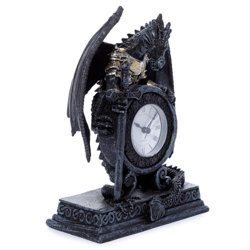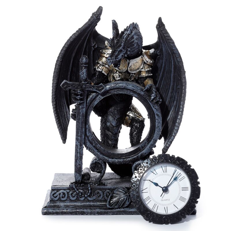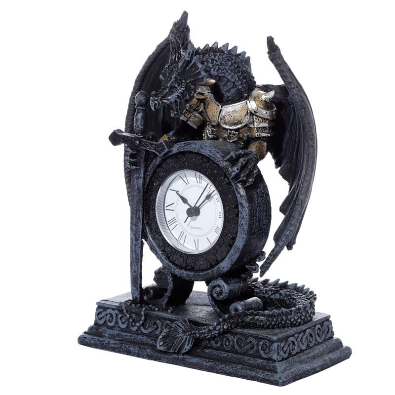 https://www.puckator.co.uk/drg28-dragon-in-armour-mantle-clock.htmlDRG28Dragon in Armour Mantle Clock<p>Dragon in Armour Mantle Clock</p><ul><li><strong>Material:</strong> Resin with a Plastic Clock Movement</li><li><strong>Batteries Required:</strong>1 AAA</li><li><strong>Batteries Included:</strong> No</li><li><strong>Product Information:</strong> The clock movement is inset in the body of the clock. To gain access to the battery or to adjust the time, pull the clock movement out of the resin body of the clock. </li><li><strong>Clock Type:</strong> Mantle clock, this item is not wall mountable.</li></ul><p><strong>Product Resources:</strong></p><ul><li><strong>Want to find out more about purchasing from Puckator?</strong> Then read our <a href="/advice-centre" target="_blank" title="Puckator UK Customer Information Guide">customer information guide.</a></li><li><strong>Need more information on Clocks?</strong> Visit our resource centre and browse our <a href="https://www.puckator.co.uk/clocks-guide" target=_blank" title="Puckator UK Clock Product Buying Guide">Clocks product buying guide</a> full of useful tips and information on purchasing and selling our products.</li><li><strong>Battery & Electrical Resources:</strong> Explore our comprehensive battery and electrical product resources, including essential safety guidelines and tips for responsible disposal. <a href="https://www.puckator.co.uk/battery-regulations-safe-disposal" " target=_blank" title="Battery & Electrical Regulations & Safety Information | Puckator"> Click here</a> to learn more.</li></ul>https://www.puckator.co.uk/media/catalog/product/D/R/DRG28_001_1677515598.jpg8.5instock8.58.500Puckator000https://www.puckator.co.uk/media/catalog/product/D/R/DRG28_001_1677515598.jpg1383014936/Clocks/Dragon Gifts/Price Drop/Temporary Sale - FR2008-12-10T00:00:00+0000No