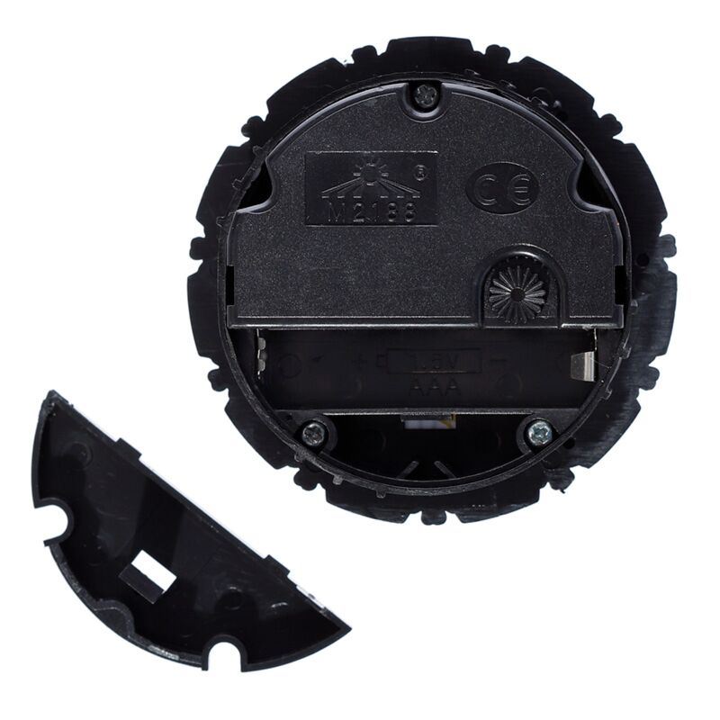 Product Information: The clock movement is inset in the body of the clock. To gain access to the battery or to adjust the time, pull the clock movement out of the resin body of the clock.
