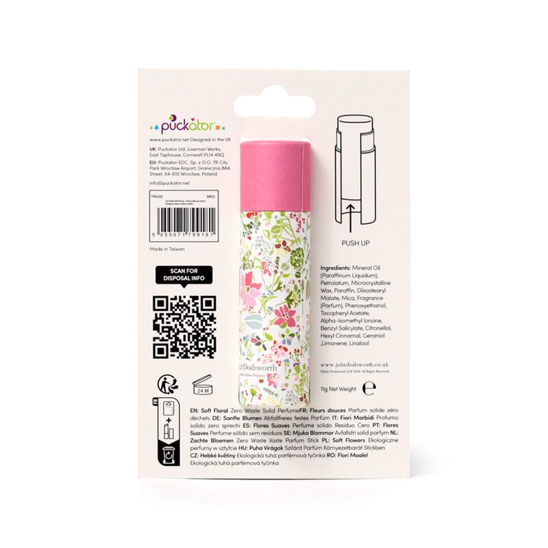 https://www.puckator.co.uk/frag02-julie-dodsworth-pink-botanical-solid-perfume-stick-balm.htmlFRAG02Julie Dodsworth Pink Botanical Solid Perfume Stick Balm<p>Julie Dodsworth Pink Botanical Solid Perfume Stick Balm</p><ul><li><strong>Material:</strong> Perfumed Solid Balm in a Card and Paper Holder</li><li><strong>Fragrance:</strong> Soft Floral</li><li><strong>Ingredients:</strong> Full list provided on the product including best before dates.</li><li><strong>Palm Oil Free:</strong> Yes</li><li><strong>Gluten Free:</strong> Yes</li><li><strong>Cruelty Free:</strong> Yes</li><li><strong>Vegan:</strong> Yes</li><li><strong>Eco Credentials:</strong> Plastic Free</li><li><strong>Safety Information:</strong> This is not a toy or a food item.</li><li><strong>Use Within:</strong> Use within 24 months of opening.</li><li><strong>CPNP:</strong> TBC</li><li><strong>License Information:</strong> This product is fully licensed and can be sold worldwide.</li></ul><p><strong>Product Resources:</strong></p><ul><li><strong>Want to find out more about purchasing from Puckator?</strong> Then read our <a href="/advice-centre" target="_blank" title="Puckator UK Customer Information Guide">customer information guide.</a></li><li><strong>Need more information on lip balm?</strong> Visit our resource centre and browse our <a href="https://www.puckator.co.uk/lip-balm-guide" target=_blank" title="Puckator UK Lip Balm Product Buying Guide">lip balm product buying guide</a> full of useful tips and information on purchasing and selling our products.</li></ul><p><img src="{{media url="wysiwyg/Symbols/PLASTICFREE.jpg";}}" alt="Plastic Free Packaging Symbol|Puckator" width="100" height="100"><img src="{{media url="wysiwyg/Symbols/CRUELTYFREE.jpg";}}" alt="Cruelty Free Packaging Symbol|Puckator" width="100" height="100"><img src="{{media url="wysiwyg/Symbols/PALMOILFREE.jpg";}}" alt="Palm Oil Free Packaging Symbol|Puckator" width="100" height="100"><img src="{{media url="wysiwyg/Symbols/VEGAN.jpg";}}" alt="Vegan Packaging Symbol|Puckator" width="100" height="100"></p>https://www.puckator.co.uk/media/catalog/product/F/R/FRAG02_001_1734609535.jpg0.98instock1.950.98500.97Puckator000https://www.puckator.co.uk/media/catalog/product/F/R/FRAG02_001_1734609535.jpg188761938918878/Lip Balm & Lip Gloss/Tropical Paradise & Botanical/Travel Accessories & Gifts/Julie Dodsworth/General Clearance/General Clearance - EU Sites2024-05-23T05:48:08+0000No
