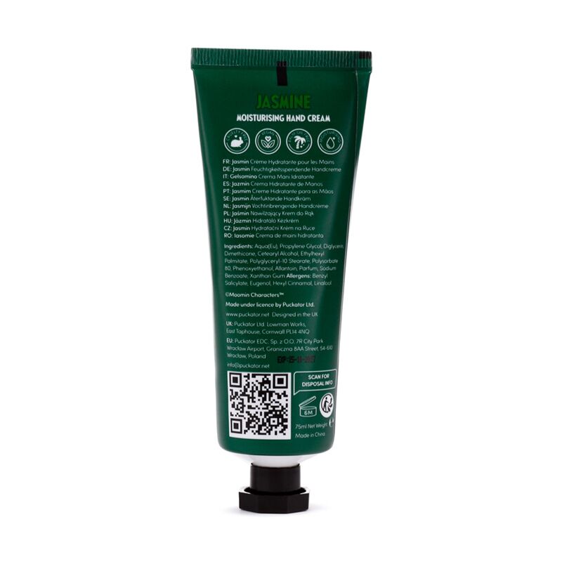 https://www.puckator.co.uk/handc15-moomin-garden-life-moisturising-hand-cream-75ml.htmlHANDC15Moomin Garden Life Moisturising Hand Cream 75ml<p>Moomin Garden Life Moisturising Hand Cream 75ml</p><ul><li><strong>Material:</strong> Polyethylene and Aluminium (Tube), Polypropylene (Lid) and Hand Cream</li><li><strong>Fragrances:</strong> Jasmine and Vanilla</li><li><strong>Ingredients:</strong> Full ingredients can be found on the product packaging.</li><li><strong>Vegan:</strong> Yes</li><li><strong>Palm Oil Free:</strong> Yes</li><li><strong>Cruelty Free:</strong> Yes</li><li><strong>CPNP:</strong> TBC</li><li><strong>License Information:</strong> This product is fully licensed for the locations shown below. If you are outside of these areas, please do not attempt to purchase this product, if you do the product will be removed from your order. If you require further information please get in touch with our customer service team.<br><strong>Licensed Territories: </strong><i>Aland Island, Albania, Austria, Azores (Portugal), Bahrain, Balearic Islands (Spain), Belgium, Bosnia & Herzegovina, Bulgaria, Canada, Canary Islands (Spain), Ceuta & Melilla, Corsica (France), Croatia, Cyprus, Czech Republic, Denmark, Estonia, Finland (Mainland), France (Mainland), French Guiana, Germany, Gibraltar, Greece, Guadeloupe, Guernsey (Channel Islands), Holy See (Vatican City State), Hong Kong, Hungary, Iceland, Ireland, Isle of Man (United Kingdom), Italy (Mainland), Jersey (Channel Islands), Jordan, Kosovo, Kuwait, Latvia, Liechtenstein, Lithuania, Luxembourg, North Macedonia, Madeira (Portugal), Malta, Martinique, Mayotte, Moldova, Monaco, Montenegro, Netherlands, Norway, Palestine, State of, Poland, Portugal (Mainland), Qatar, Reunion, Romania, Saint Martin (French Part), San Marino, Serbia, Sicily (Italy), Singapore, Slovakia, Slovenia, Spain (Mainland), Sweden, Switzerland, Ukraine, United Arab Emirates, United Kingdom (Mainland), United Kingdom (Northern Ireland, Highlands & Islands)</i></li></ul><p><strong>Product Resources:</strong></p><ul><li><strong>Want to find out more about purchasing from Puckator?</strong> Then read our <a href="/advice-centre" target="_blank" title="Puckator UK Customer Information Guide">customer information guide.</a></li><li><strong>Need more information on beauty accessories?</strong> Visit our resource centre and browse our <a href="https://www.puckator.co.uk/beauty-accessories-buying-guide" target=_blank" title="Puckator UK Beauty Accessories Buying Guide">beauty accessories product buying guide</a> full of useful tips and information on purchasing and selling our products.</li></ul><p><img src="{{media url="wysiwyg/Symbols/CRUELTYFREE.jpg";}}" alt="Cruelty Free Packaging Symbol|Puckator" width="100" height="100"><img src="{{media url="wysiwyg/Symbols/PALMOILFREE.jpg";}}" alt="Palm Oil Free Packaging Symbol|Puckator" width="100" height="100"><img src="{{media url="wysiwyg/Symbols/VEGAN.jpg";}}" alt="Vegan Packaging Symbol|Puckator" width="100" height="100"></p>https://www.puckator.co.uk/media/catalog/product/H/A/HANDC15_001_1741968382.jpg1.4instock1.751.4200.35Puckator000https://www.puckator.co.uk/media/catalog/product/H/A/HANDC15_001_1741968382.jpg1887618878190541912219389/Lip Balm & Lip Gloss/Moomin/Hand Cream/Seasonal Clearance/Seasonal Sale - EU Sites2024-11-01T14:16:51+0000No