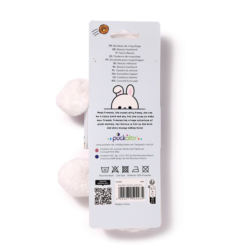 https://www.puckator.co.uk/headb02-adoramals-frances-the-rabbit-plush-beauty-headband.htmlHEADB02Adoramals Frances the Rabbit Plush Beauty Headband<p>Adoramals Frances the Rabbit Plush Beauty Headband</p><ul><li><strong>Material: </strong>Polyester</li><li><strong>Size: </strong>One Size</li><li><strong>Washing Information: </strong>Machine washable at 30°C</li><li><strong>Suitable for Ironing: </strong>No</li><li><strong>Suitable for Dry Cleaning: </strong>No</li><li><strong>Suitable for Tumble Drying: </strong>No</li><li><strong>Suitable for Bleaching: </strong>No</li></ul><p><strong>Product Resources:</strong></p><ul><li><strong>Want to find out more about purchasing from Puckator?</strong> Then read our <a href="/advice-centre" target="_blank" title="Puckator UK Customer Information Guide">customer information guide.</a></li><li><strong>Need more information on beauty accessories?</strong> Visit our resource centre and browse our <a href="https://www.puckator.co.uk/beauty-accessories-buying-guide" target=_blank" title="Puckator UK Beauty Accessories Buying Guide">beauty accessories product buying guide</a> full of useful tips and information on purchasing and selling our products.</li></ul>https://www.puckator.co.uk/media/catalog/product/H/E/HEADB02_001_1737452621.jpg1.05instock2.11.05501.05Puckator000https://www.puckator.co.uk/media/catalog/product/H/E/HEADB02_001_1737452621.jpg142181674118419/Beauty Accessories/Gardens, Countryside & Farm Parks/Adoramals/General Clearance/General Clearance - EU Sites2024-06-06T14:37:50+0000No