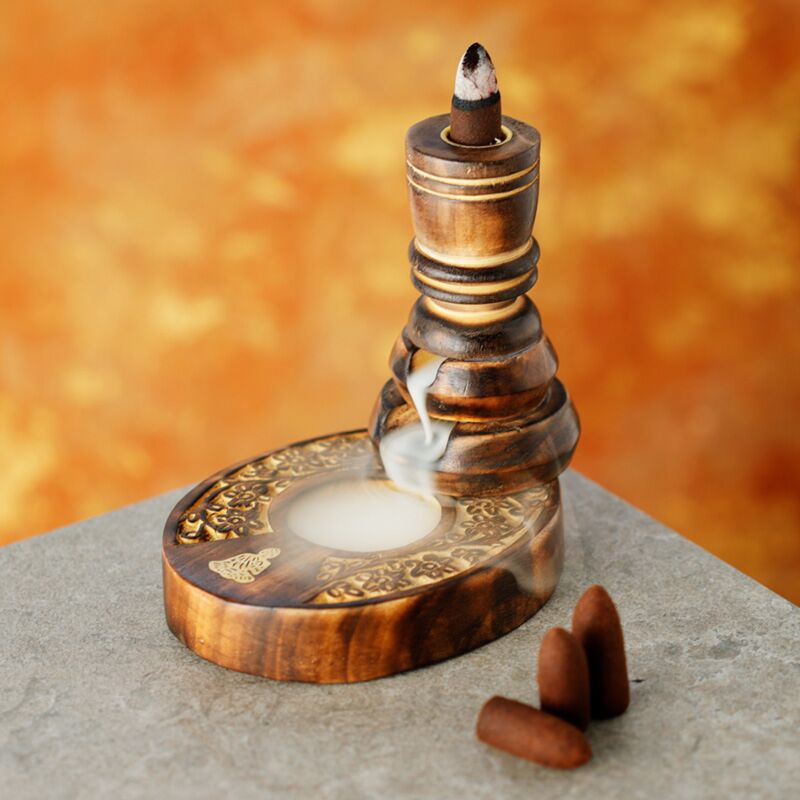 Product Information: Backflow incense flows down through a backflow burner and creates a mist around the product. This item must be placed on a heatproof surface. When backflow incense burns the mist it creates can leave a light residue on the burner and the surface the burner is placed on. This is from natural oils and resins within the incense and can be wiped clean with a damp cloth. Never leave burning incense unattended. Some of our small backflow burners come with a small foam mat that the burner can be placed on when in use, however this is not heat proof so as stated above, the burner must be placed on a heatproof surface before using.