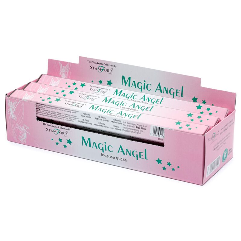 https://www.puckator.co.uk/inc298-37150-stamford-angel-incense-sticks-magic-angel.htmlINC29837150 Stamford Angel Incense Sticks Magic Angel<p>37150 Stamford Angel Incense Sticks Magic Angel</p><ul><li><strong>Brand:</strong> Stamford Angel</li><li><strong>Material:</strong> Hand rolled top quality incense, resins and plant material.</li><li><strong>Fragrance:</strong> Aloe Vera</li><li><strong>Approximate Sticks per Pack:</strong> 12 sticks</li><li><strong>Approximate Burn Time:</strong> 30 Minutes</li><li><strong>Cruelty Free:</strong> Yes</li><li><strong>Vegan:</strong> Yes</li></ul><p><strong>Product Resources:</strong></p><ul><li><strong>Want to find out more about purchasing from Puckator?</strong> Then read our <a href="/advice-centre" target="_blank" title="Puckator UK Customer Information Guide">customer information guide.</a></li><li><strong>Need more information on incense sticks and cones?</strong> Visit our resource centre and browse our <a href="https://www.puckator.co.uk/incense-guide" target=_blank" title="Puckator UK Incense Sticks and Cones Product Buying Guide">incense sticks and cones product buying guide</a> full of useful tips and information on purchasing and selling our products.</li><li><strong>Safety Information -</strong> <a href="https://www.puckator.co.uk/oil-burner-candle-safety" target="_blank" title="Read our Candle, Incense and Burner Safety Information Page">Visit</a> our candle, incense and burner safety page.</li></ul><p><img src="{{media url="wysiwyg/Symbols/CRUELTYFREE.jpg";}}" alt="Cruelty Free Packaging Symbol|Puckator" width="100" height="100"><img src="{{media url="wysiwyg/Symbols/VEGAN.jpg";}}" alt="Vegan Packaging Symbol|Puckator" width="100" height="100"></p>https://www.puckator.co.uk/media/catalog/product/I/N/INC298_001_1670945904.jpg0.42instock0.440.4250.02Puckator000https://www.puckator.co.uk/media/catalog/product/I/N/INC298_001_1670945904.jpg15120/Incense Sticks & Cones/Stamford Incense Sticks & Cones/Temporary Sale - FR/Seasonal Clearance2013-01-09T13:14:31+0000No