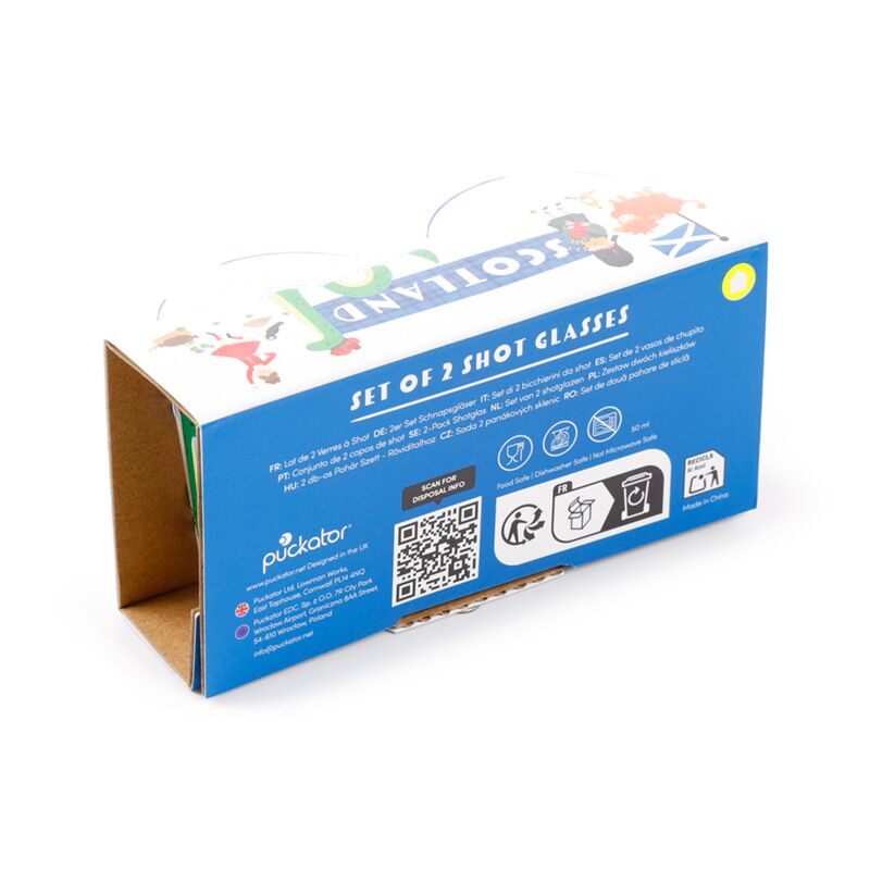 https://www.puckator.co.uk/jar103-set-of-2-scotland-souvenir-glass-shot-glasses-50ml.htmlJAR103Set of 2 Scotland Souvenir Glass Shot Glasses (50ml)<p>Set of 2 Scotland Souvenir Glass Shot Glasses (50ml)</p><ul><li><strong>Material:</strong> Soda Lime Glass</li><li><strong>Number in Set:</strong> 2</li><li><strong>Food Safe:</strong> Yes</li><li><strong>Microwave Safe:</strong> No</li><li><strong>Dishwasher Safe:</strong> No</li><li><strong>Suitable for Hot Liquids:</strong> No</li><li><strong>Volume per Shot Glass:</strong> 50ml</li></ul><p><strong>Product Resources:</strong></p><ul><li><strong>Want to find out more about purchasing from Puckator?</strong> Then read our <a href="/advice-centre" target="_blank" title="Puckator UK Customer Information Guide">customer information guide.</a></li><li><strong>Need more information on kitchen and dining accessories?</strong> Visit our resource centre and browse our <a href="https://www.puckator.co.uk/kitchen-dining-buying-guide" target=_blank" title="Puckator UK Buying Guide to Puckator's Kitchen and Dining Accessories">kitchen and dining accessories product buying guide</a> full of useful tips and information on purchasing and selling our products.</li></ul>https://www.puckator.co.uk/media/catalog/product/J/A/JAR103_001_1774265924.jpg1.85instock1.851.8500Puckator000https://www.puckator.co.uk/media/catalog/product/J/A/JAR103_001_1774265924.jpg1924919251/Drinking Jars, Glasses & Tumblers/New/Back in stock2025-12-01T09:43:36+0000Yes