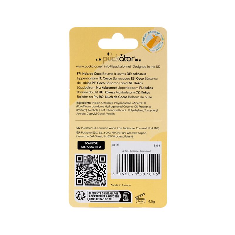 https://www.puckator.co.uk/lip171-beans-co-cats-stick-lip-balm.htmlLIP171Beans & Co Cats Stick Lip Balm<p>Beans & Co Cats Stick Lip Balm</p><ul><li><strong>Material:</strong> PET Plastic (Tube), Polypropylene (Lid) and Lip Balm</li><li><strong>Flavours:</strong> Coconut</li><li><strong>Ingredients:</strong> Full list provided on the product including best before dates.</li><li><strong>Palm Oil Free:</strong> Yes</li><li><strong>Gluten Free:</strong> Yes</li><li><strong>Cruelty Free:</strong> Yes</li><li><strong>Vegan:</strong> Yes</li><li><strong>Safety Information:</strong> This is not a toy or a food item.</li><li><strong>CPNP:</strong> TBC</li></ul><p><strong>Product Resources:</strong></p><ul><li><strong>Want to find out more about purchasing from Puckator?</strong> Then read our <a href="/advice-centre" target="_blank" title="Puckator UK Customer Information Guide">customer information guide.</a></li><li><strong>Need more information on lip balm?</strong> Visit our resource centre and browse our <a href="https://www.puckator.co.uk/lip-balm-guide" target=_blank" title="Puckator UK Lip Balm Product Buying Guide">lip balm product buying guide</a> full of useful tips and information on purchasing and selling our products.</li></ul><p><img src="{{media url="wysiwyg/Symbols/CRUELTYFREE.jpg";}}" alt="Cruelty Free Packaging Symbol|Puckator" width="100" height="100"><img src="{{media url="wysiwyg/Symbols/PALMOILFREE.jpg";}}" alt="Palm Oil Free Packaging Symbol|Puckator" width="100" height="100"><img src="{{media url="wysiwyg/Symbols/VEGAN.jpg";}}" alt="Vegan Packaging Symbol|Puckator" width="100" height="100"></p>https://www.puckator.co.uk/media/catalog/product/L/I/LIP171_001_1747148900.jpg0.58instock1.150.58500.57Puckator000https://www.puckator.co.uk/media/catalog/product/L/I/LIP171_001_1747148900.jpg188781887619389/Lip Balm & Lip Gloss/Cat Gifts & Collectables/General Clearance/General Clearance - EU Sites2024-11-01T14:16:50+0000No