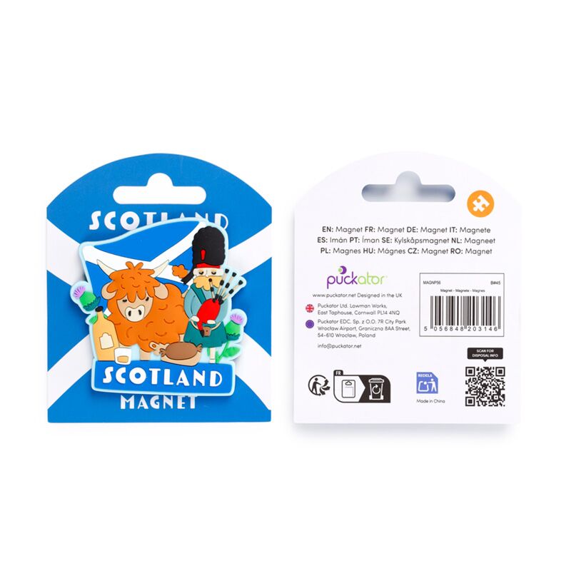 https://www.puckator.co.uk/magnp56-highland-coo-piper-scotland-souvenir-pvc-magnet.htmlMAGNP56Highland Coo & Piper Scotland Souvenir PVC Magnet<p>Highland Coo & Piper Scotland Souvenir PVC Magnet</p><ul><li><strong>Material:</strong> PVC and Metal</li></ul><p><strong>Product Resources:</strong></p><ul><li><strong>Want to find out more about purchasing from Puckator?</strong> Then read our <a href="/advice-centre" target="_blank" title="Puckator UK Customer Information Guide">customer information guide.</a></li><li><strong>Need more information on magnets and souvenirs?</strong> Visit our resource centre and browse our <a href="https://www.puckator.co.uk/souvenirs-guide" target=_blank" title="Puckator UK Souvenirs Product Buying Guide">magnets and souvenirs product buying guide</a> full of useful tips and information on purchasing and selling our products.</li></ul>https://www.puckator.co.uk/media/catalog/product/M/A/MAGNP56_001_1773835814.jpg0.85instock0.850.8500Puckator000https://www.puckator.co.uk/media/catalog/product/M/A/MAGNP56_001_1773835814.jpg1492818666/Magnets/New/Back in stock2025-12-01T09:43:35+0000Yes