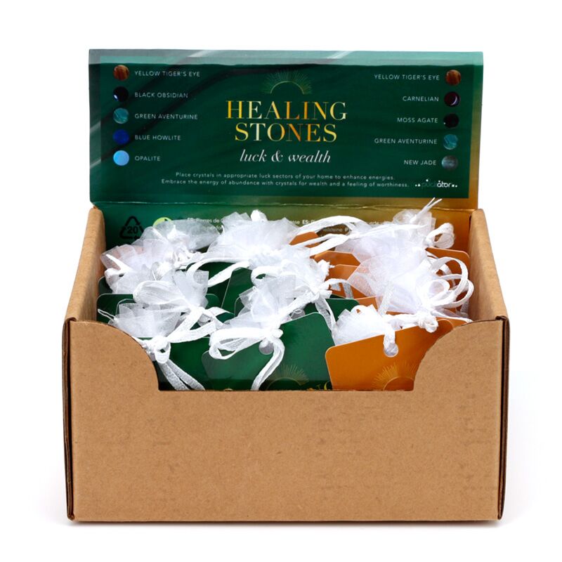 https://www.puckator.co.uk/min36-set-of-5-luck-wealth-stones.htmlMIN36Set of 5 Luck & Wealth Stones<p>Set of 5 Luck & Wealth Stones</p><ul><li><strong>Material:</strong> Gemstone</li><li><strong>Number in Set:</strong> 5</li><li><strong>Stones:</strong> Luck (Yellow Tigers Eye, Black Obsidian, Green Aventurine, Blue Howlite, Opalite) - Wealth (Yellow Tigers Eye, Carnelian, Moss Agate, Green Aventurine, New Jade)</li><li><strong>Product Information:</strong> This set contains natural gemstones which can vary in tone and colour from those in the photo.</li></ul><p><strong>Product Resources:</strong></p><ul><li><strong>Want to find out more about purchasing from Puckator?</strong> Then read our <a href="/advice-centre" target="_blank" title="Puckator UK Customer Information Guide">customer information guide.</a></li><li><strong>Need more information on collections and themes?</strong> Visit our resource centre and browse our <a href="https://www.puckator.co.uk/collections-brands-guide" target=_blank" title="Puckator UK Collections and Themes Product Buying Guide">collections and themes product buying guide</a> full of useful tips and information on purchasing and selling our products.</li></ul>https://www.puckator.co.uk/media/catalog/product/M/I/MIN36_001_1701343699.jpg1.49instock1.71.49120.21Puckator000https://www.puckator.co.uk/media/catalog/product/M/I/MIN36_001_1701343699.jpg9320113551693516937/Natural History & Museums/Unusual Christmas Gifts/Crystals, Gemstone Gifts & Healing Stones/Seasonal Clearance/Seasonal Sale - EU Sites2021-10-08T15:16:58+0000No