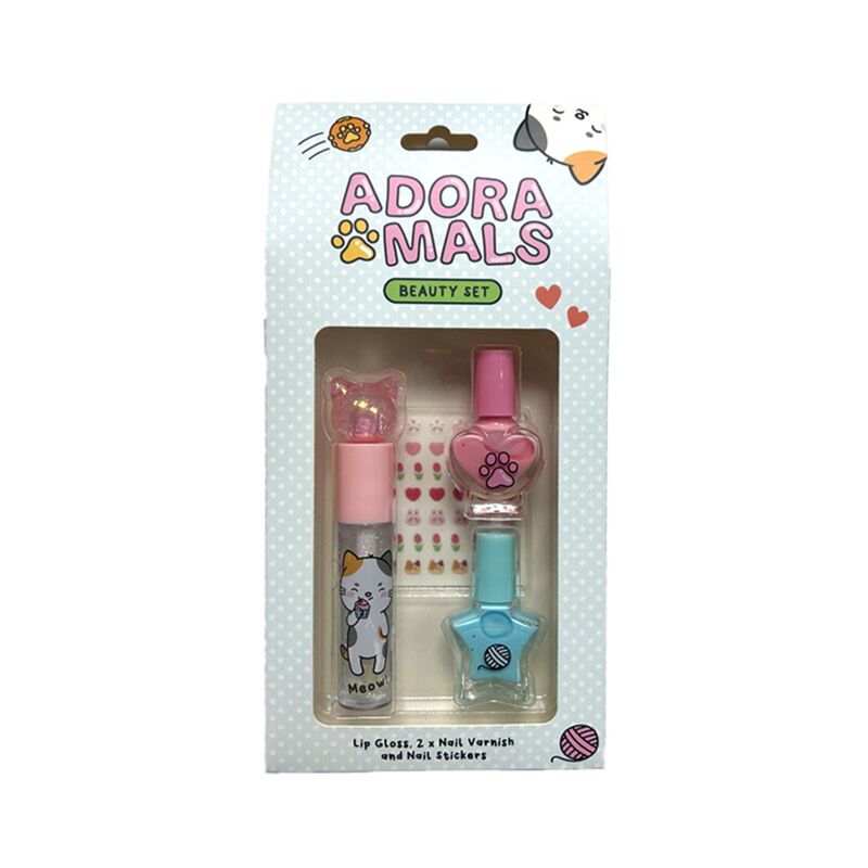https://www.puckator.co.uk/mkset02-adoramals-lola-the-cat-kids-lip-gloss-nail-cosmetic-beauty-set.htmlMKSET02Adoramals Lola the Cat Kids Lip Gloss & Nail Cosmetic Beauty Set<p>Adoramals Lola the Cat Kids Lip Gloss & Nail Cosmetic Beauty Set</p><ul><li><strong>Material:</strong> Lip Gloss, Nail Varnish, Glitter, Plastic (AS/ABS/PP/PE), Nylon, Acrylic, Glass, Paper, PVC</li><li><strong>Set Contains:</strong> 1 Tube of Lip Gloss with Applicator (Vanilla), 2 Bottles of Nail Polish, 1 Sheet of Nail Stickers</li><li><strong>Not Suitable For: </strong>Under 6 Years</li><li><strong>Product Ingredients:</strong> Full ingredients and allergen information can be found on the product packaging.</li><li><strong>Use Within:</strong> Use within 12 months of opening.</li><li><strong>Volume:</strong> Lip Gloss 3ml, Nail Varnish 4ml (per bottle)</li></ul><p><strong>Product Resources:</strong></p><ul><li><strong>Want to find out more about purchasing from Puckator?</strong> Then read our <a href="/advice-centre" target="_blank" title="Puckator UK Customer Information Guide">customer information guide.</a></li><li><strong>Need more information on beauty accessories?</strong> Visit our resource centre and browse our <a href="https://www.puckator.co.uk/beauty-accessories-buying-guide" target=_blank" title="Puckator UK Beauty Accessories Buying Guide">beauty accessories product buying guide</a> full of useful tips and information on purchasing and selling our products.</li></ul>https://www.puckator.co.uk/media/catalog/product/M/K/MKSET02_001_1767238315.jpg2.79outofstock2.792.7900Puckator000https://www.puckator.co.uk/media/catalog/product/M/K/MKSET02_001_1767238315.jpg142181841916741/Lip Balm & Lip Gloss/Nail Accessories/Cat Gifts & Collectables/Adoramals/Coming Soon/Coming Soon EU2025-12-24T09:17:32+0000No