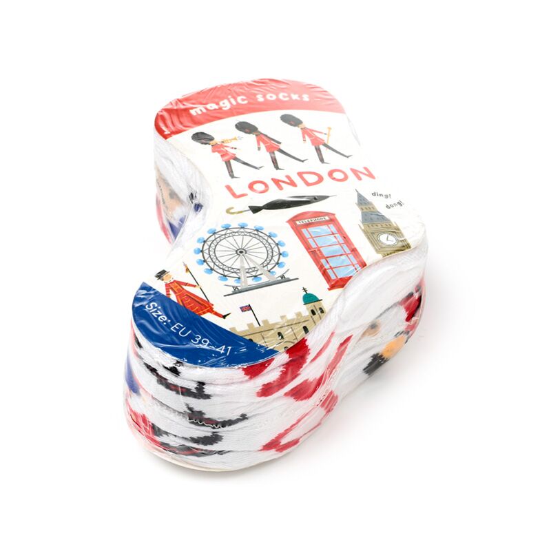 https://www.puckator.co.uk/msock01-london-souvenir-compressed-magic-socks.htmlMSOCK01London Souvenir Compressed Magic Socks<p>London Souvenir Compressed Magic Socks</p><ul><li><strong>Material:</strong> 75% Cotton, 23% Polyester, 2% Spandex</li><li><strong>Sizes:</strong> EU 36-38 (UK 3-5/5.5), EU 39-41 (UK5.5/6-7/7.5)</li><li><strong>Washing Information:</strong>Hand wash only</li><li><strong>Suitable for Ironing:</strong>No</li><li><strong>Suitable for Dry Cleaning:</strong>No</li><li><strong>Suitable for Tumble Drying:</strong>No</li><li><strong>Suitable for Bleaching:</strong>No</li><li><strong>Product Information:</strong> Each pair of socks comes compressed so they are compact for travel or easy storage.</li></ul><p><strong>Product Resources:</strong></p><ul><li><strong>Want to find out more about purchasing from Puckator?</strong> Then read our <a href="/advice-centre" target="_blank" title="Puckator UK Customer Information Guide">customer information guide.</a></li><li><strong>Need more information on collections and themes?</strong> Visit our resource centre and browse our <a href="https://www.puckator.co.uk/collections-brands-guide" target=_blank" title="Puckator UK Collections and Themes Product Buying Guide">collections and themes product buying guide</a> full of useful tips and information on purchasing and selling our products.</li></ul>https://www.puckator.co.uk/media/catalog/product/M/S/MSOCK01_001_1758292342.jpg1.35instock1.351.3500Puckator000https://www.puckator.co.uk/media/catalog/product/M/S/MSOCK01_001_1758292342.jpg/London & UK Souvenirs/Travel Accessories & Gifts/British & London Souvenir Gifts/Novelty Socks & Plush Slippers2025-04-25T15:28:11+0000No