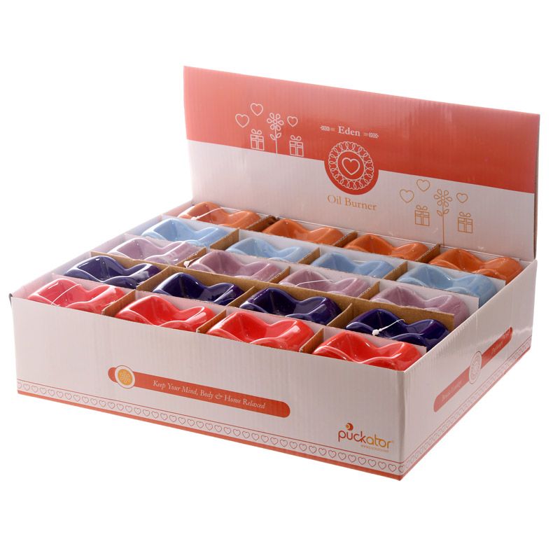 https://www.puckator.co.uk/ob185-eden-bright-single-colour-heart-shaped-oil-burner.htmlOB185Eden Bright Single Colour Heart Shaped Oil Burner<p>Eden Bright Single Colour Heart Shaped Oil Burner</p><ul><li><strong>Material:</strong> Ceramic</li><li><strong>Suitable for Use With:</strong> Water and oils.</li><li><strong>Candle Included:</strong> No</li><li><strong>Oils Included:</strong> No</li><li><strong>Safety Information:</strong> Always read and follow the instructions that come with this product. Use a good quality standard tea light and do not overfill the dish.</li></ul><p><strong>Product Resources:</strong></p><ul><li><strong>Want to find out more about purchasing from Puckator?</strong> Then read our <a href="/advice-centre" target="_blank" title="Puckator UK Customer Information Guide">customer information guide.</a></li><li><strong>Need more information on oil and tea light burners?</strong> Visit our resource centre and browse our <a href="https://www.puckator.co.uk/oil-burners-guide" target=_blank" title="Puckator UK Oil Burners & Tea Light Burners Product Buying Guide"> wholesale tea light and oil burners guide</a> full of hints and tips on maximising sales on this range.</li><li><strong>Safety Information -</strong> <a href="https://www.puckator.co.uk/oil-burner-candle-safety" target="_blank" title="Read our Candle, Incense and Burner Safety Information Page">Visit</a> our candle, incense and burner safety page.</li></ul>https://www.puckator.co.uk/media/catalog/product/O/B/OB185_001_1705596919.jpg0.9instock0.90.900Puckator000https://www.puckator.co.uk/media/catalog/product/O/B/OB185_001_1705596919.jpg15747/Oil Burners & Wax Melt Burners/Valentine's Day Gifts/Arriving Soon - Pre-order Oil Burners/Price Drop/Unusual Christmas Gifts2012-11-20T14:54:51+0000No