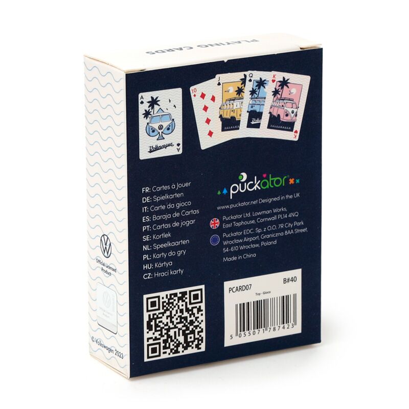 https://www.puckator.co.uk/pcard07b-explore-more-volkswagen-vw-t1-camper-bus-standard-playing-card-deck.htmlPCARD07BExplore More Volkswagen VW T1 Camper Bus Standard Playing Card Deck<p>Explore More Volkswagen VW T1 Camper Bus Standard Playing Card Deck</p><ul><li><strong>Material:</strong> Card and Paper</li><li><strong>Number of Cards in Deck:</strong> 52 plus 2 Jokers</li><li><strong>License Information:</strong> This product is fully licensed for the locations shown below. If you are outside of these areas, please do not attempt to purchase this product, if you do the product will be removed from your order. If you require further information please get in touch with our customer service team. Sales to VW dealerships, or anyone that supplies VW dealerships are also not allowed as part of our license agreement.<br><strong>Licensed Territories: </strong><i>Aland Island, Austria, Azores (Portugal), Balearic Islands (Spain), Belgium, Bulgaria, Canary Islands (Spain), Ceuta & Melilla, Corsica (France), Croatia, Cyprus, Czech Republic, Denmark, Estonia, Finland (Mainland), France (Mainland), French Guiana, Germany, Gibraltar, Greece, Guadeloupe, Guernsey (Channel Islands), Holy See (Vatican City State), Hungary, Iceland, Ireland, Isle of Man (United Kingdom), Italy (Mainland), Jersey (Channel Islands), Latvia, Liechtenstein, Lithuania, Luxembourg, Madeira (Portugal), Malta, Martinique, Mayotte, Netherlands, Norway, Poland, Portugal (Mainland), Reunion, Romania, Saint Martin (French Part), Sicily (Italy), Slovakia, Slovenia, Spain (Mainland), Sweden, Switzerland, Turkey, United Kingdom (Mainland), United Kingdom (Northern Ireland, Highlands & Islands)</i></li></ul><p><strong>Product Resources:</strong></p><ul><li><strong>Want to find out more about purchasing from Puckator?</strong> Then read our <a href="/advice-centre" target="_blank" title="Puckator UK Customer Information Guide">customer information guide.</a></li><li><strong>Need more information on collections and themes?</strong> Visit our resource centre and browse our <a href="https://www.puckator.co.uk/collections-brands-guide" target=_blank" title="Puckator UK Collections and Themes Product Buying Guide">collections and themes product buying guide</a> full of useful tips and information on purchasing and selling our products.</li></ul>https://www.puckator.co.uk/media/catalog/product/P/C/PCARD07B_001_1737046599.jpg0.53instock1.050.53500.52Puckator000https://www.puckator.co.uk/media/catalog/product/P/C/PCARD07B_001_1737046599.jpg184491873419341/Volkswagen VW Camper Bus Gifts/Puzzles & Card Games/General Clearance/General Clearance - EU Sites2023-12-19T10:38:17+0000No
