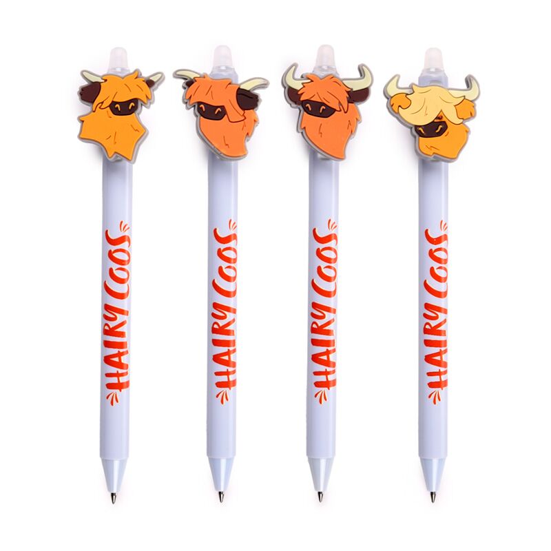https://www.puckator.co.uk/pen325-inkredible-erasable-pen-with-pvc-hairy-coos-highland-coo-topper.htmlPEN325Inkredible Erasable Pen with PVC Hairy Coos Highland Coo Topper<p>Inkredible Erasable Pen with PVC Hairy Coos Highland Coo Topper</p><ul><li><strong>Material:</strong> Plastic (ABS/PP), PVC, Silicone and Stainless Steel</li><li><strong>Ink Colour:</strong> Blue</li><li><strong>CE/UKCA Marked:</strong> Yes</li><li><strong>EN71:</strong> Yes</li><li><strong>Not Suitable For:</strong> 0 - 3 Years</li><li><strong>Product Information:</strong> Click the PVC charm to use the pen. Erase what you have written using the rubber tip on the top of the pen.</li></ul><p><strong>Product Resources:</strong></p><ul><li><strong>Want to find out more about purchasing from Puckator?</strong> Then read our <a href="/advice-centre" target="_blank" title="Puckator UK Customer Information Guide">customer information guide.</a></li><li><strong>Need more information on novelty pens?</strong> Visit our resource centre and browse our <a href="https://www.puckator.co.uk/stationery-guide" target=_blank" title="Puckator UK Stationery Product Guide with Novelty Pens, Pencils, Erasers & More">novelty pens product buying guide</a> full of useful tips and information on purchasing and selling our products.</li></ul><p><img src="{{media url="wysiwyg/Symbols/ERASABLE.jpg";}}" alt="Erasable Packaging Symbol|Puckator" width="100" height="100"></p>https://www.puckator.co.uk/media/catalog/product/P/E/PEN325_001_1761562814.jpg0.55instock0.550.5500Puckator000https://www.puckator.co.uk/media/catalog/product/P/E/PEN325_001_1761562814.jpg1755117781182831845919193192471945819460195521955419579/Novelty Pens/Highland Coo Cow Gifts2025-07-21T08:17:43+0000No