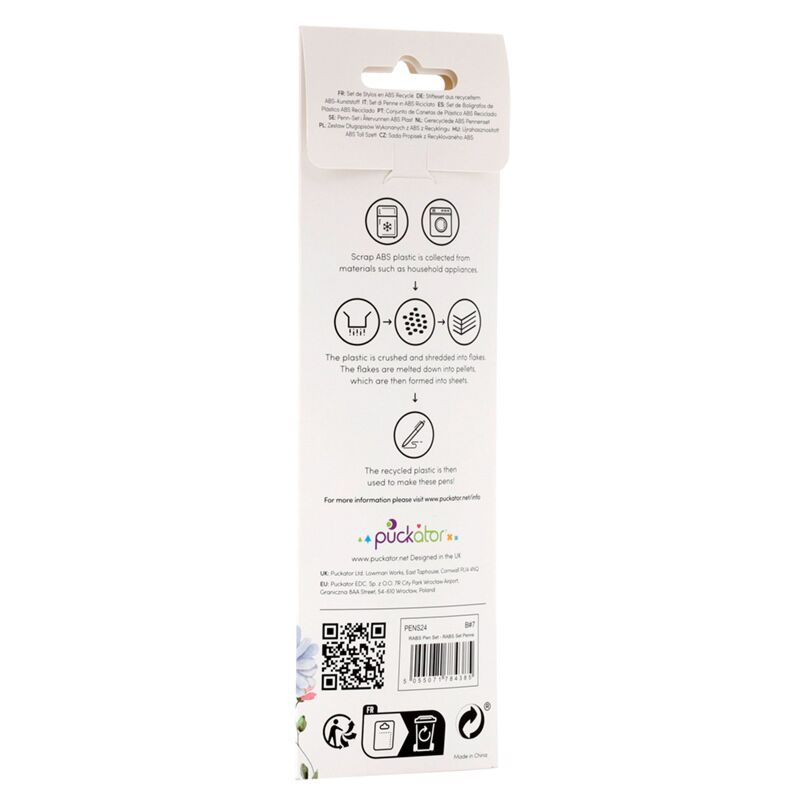 https://www.puckator.co.uk/pens24-nectar-meadows-recycled-abs-rabs-pen-set-of-3.htmlPENS24Nectar Meadows Recycled ABS (RABS) Pen Set of 3<p>Nectar Meadows Recycled ABS (RABS) Pen Set of 3</p><ul><li><strong>Material:</strong> Recycled ABS, Plastic and Metal</li><li><strong>Ink Colour:</strong> Black</li><li><strong>Number in Set:</strong> 3</li></ul><p><strong>Product Resources:</strong></p><ul><li><strong>Want to find out more about purchasing from Puckator?</strong> Then read our <a href="/advice-centre" target="_blank" title="Puckator UK Customer Information Guide">customer information guide.</a></li><li><strong>Need more information on novelty pens?</strong> Visit our resource centre and browse our <a href="https://www.puckator.co.uk/stationery-guide" target=_blank" title="Puckator UK Stationery Product Guide with Novelty Pens, Pencils, Erasers & More">novelty pens product buying guide</a> full of useful tips and information on purchasing and selling our products.</li></ul><p><img src="{{media url="wysiwyg/Symbols/RECYCLEDMATERIALS.jpg";}}" alt="Recycled Materials Packaging Symbol|Puckator" width="100" height="100"><img src="{{media url="wysiwyg/Symbols/RECYCLEDABS.jpg";}}" alt="Recycled ABS Packaging Symbol|Puckator" width="100" height="100"></p>https://www.puckator.co.uk/media/catalog/product/P/E/PENS24_001_1693313833.jpg1.27instock1.271.2700Puckator000https://www.puckator.co.uk/media/catalog/product/P/E/PENS24_001_1693313833.jpg1755117781182831845919193192471945819460195521955419579/Novelty Pens/Butterfly & Bee Gifts/Recycled & Recyclable/Nectar Meadows/Back in stock EU2022-10-28T12:30:07+0000No