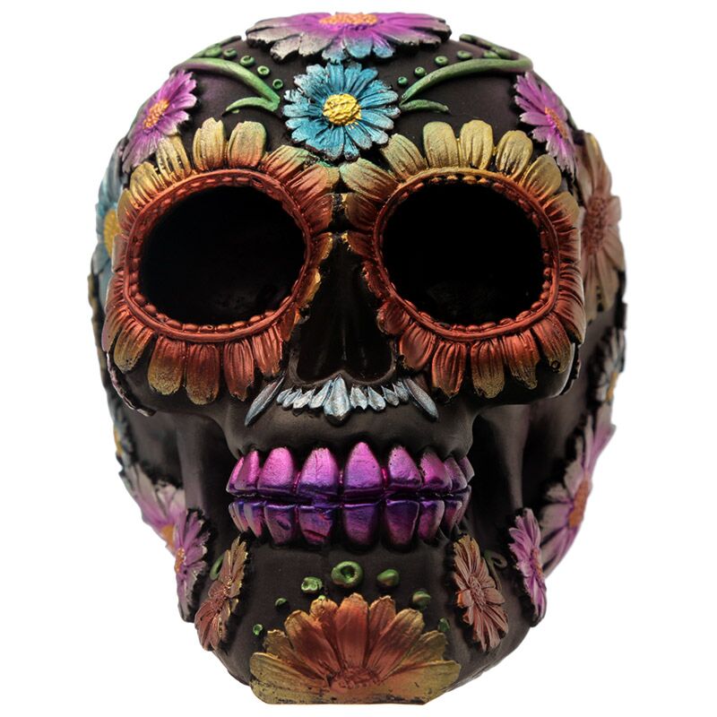 Metallic Day of the Dead Daisy & Flower Skull Decoration