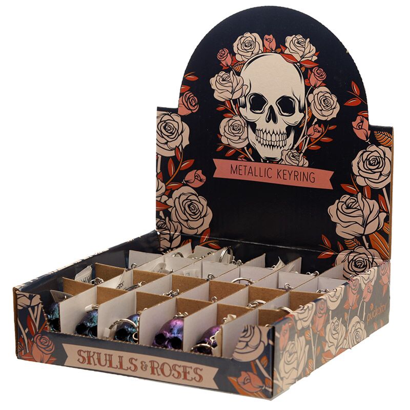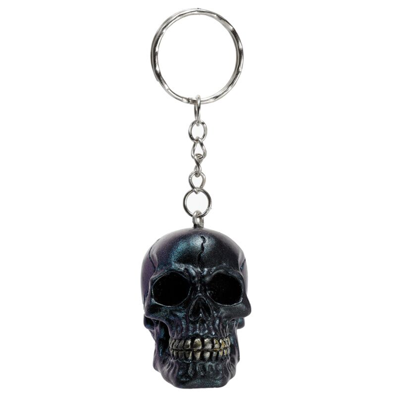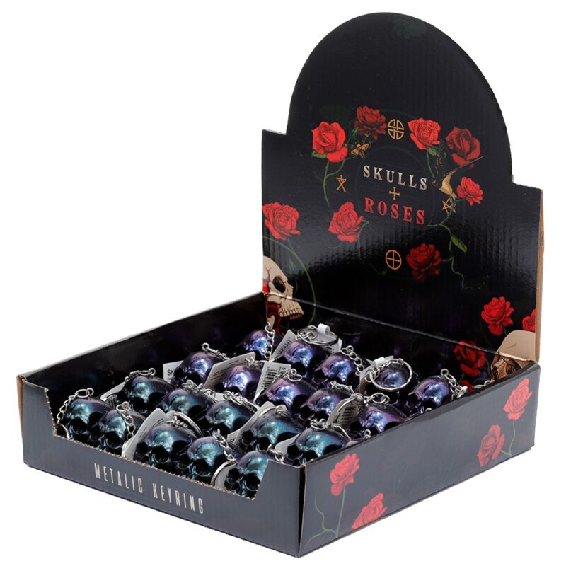 Skulls and Roses Dark Metallic and Gold Skull Keyring