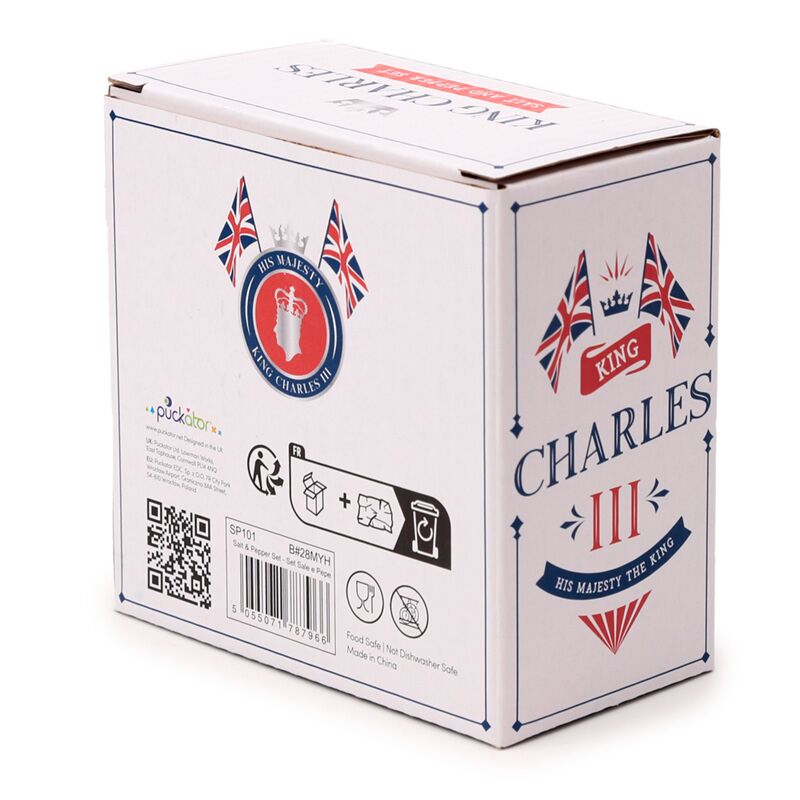 https://www.puckator.co.uk/sp101-king-charles-iii-salt-pepper-set.htmlSP101King Charles III Salt & Pepper Set<p>King Charles III Salt & Pepper Set</p><ul><li><strong>Material:</strong> Ceramic (Dolomite)</li><li><strong>Food Safe:</strong> Yes</li><li><strong>Dishwasher Safe:</strong> No</li><li><strong>Microwave Safe:</strong> No</li><li><strong>Set Contains:</strong> 1 Salt and 1 Pepper Shaker</li><li><strong>Access:</strong> Each pot can be filled via a rubber bung on the bottom.</li></ul><p><strong>Product Resources:</strong></p><ul><li><strong>Want to find out more about purchasing from Puckator?</strong> Then read our <a href="/advice-centre" target="_blank" title="Puckator UK Customer Information Guide">customer information guide.</a></li><li><strong>Need more information on kitchen and dining accessories?</strong> Visit our resource centre and browse our <a href="https://www.puckator.co.uk/kitchen-dining-buying-guide" target=_blank" title="Puckator UK Buying Guide to Puckator's Kitchen and Dining Accessories">kitchen and dining accessories product buying guide</a> full of useful tips and information on purchasing and selling our products.</li></ul>https://www.puckator.co.uk/media/catalog/product/S/P/SP101_001_1699978573.jpg4.45outofstock4.454.4500Puckator000https://www.puckator.co.uk/media/catalog/product/S/P/SP101_001_1699978573.jpg19080/Collectable Ceramics/London & UK Souvenirs/Royal Family Novelty Memorabilia/British & London Souvenir Gifts/Price Drop2023-02-10T09:46:00+0000No