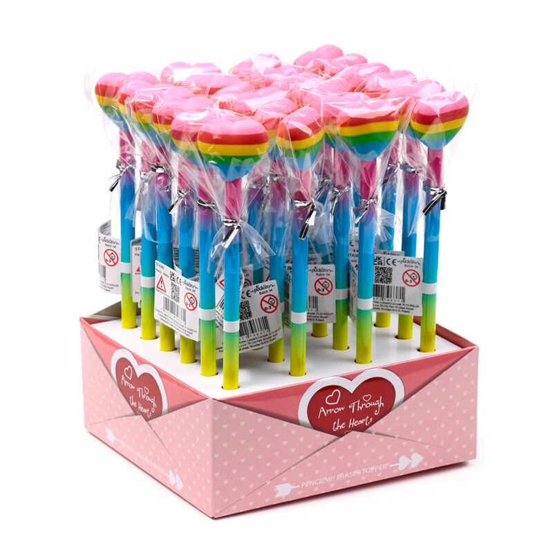 https://www.puckator.co.uk/sta360-rainbow-heart-pencil-eraser-topper.htmlSTA360Rainbow Heart Pencil & Eraser Topper<p>Rainbow Heart Pencil & Eraser Topper</p><ul><li><strong>Material:</strong> Wood (Basswood) and Rubber</li><li><strong>CE/UKCA Marked:</strong> Yes</li><li><strong>Not Suitable For:</strong> 0 - 3 Years</li><li><strong>EN71:</strong> Yes</li><li><strong>Pencil Type:</strong> HB Pencil</li></ul><p><strong>Product Resources:</strong></p><ul><li><strong>Want to find out more about purchasing from Puckator?</strong> Then read our <a href="/advice-centre" target="_blank" title="Puckator UK Customer Information Guide">customer information guide.</a></li><li><strong>Need more information on pencils and erasers?</strong> Visit our resource centre and browse our <a href="https://www.puckator.co.uk/stationery-guide" target=_blank" title="Puckator UK Stationery Product Guide with Novelty Pens, Pencils, Erasers & More">pencils and erasers product buying guide</a> full of useful tips and information on purchasing and selling our products.</li></ul>https://www.puckator.co.uk/media/catalog/product/S/T/STA360_001_1720018231.jpg0.43instock0.850.43490.42Puckator000https://www.puckator.co.uk/media/catalog/product/S/T/STA360_001_1720018231.jpg195871791418751180891948218927/Back to School/Rainbow Gifts/Novelty Pencils & Colouring Crayons/General Clearance/General Clearance - EU Sites2023-12-19T14:05:16+0000No
