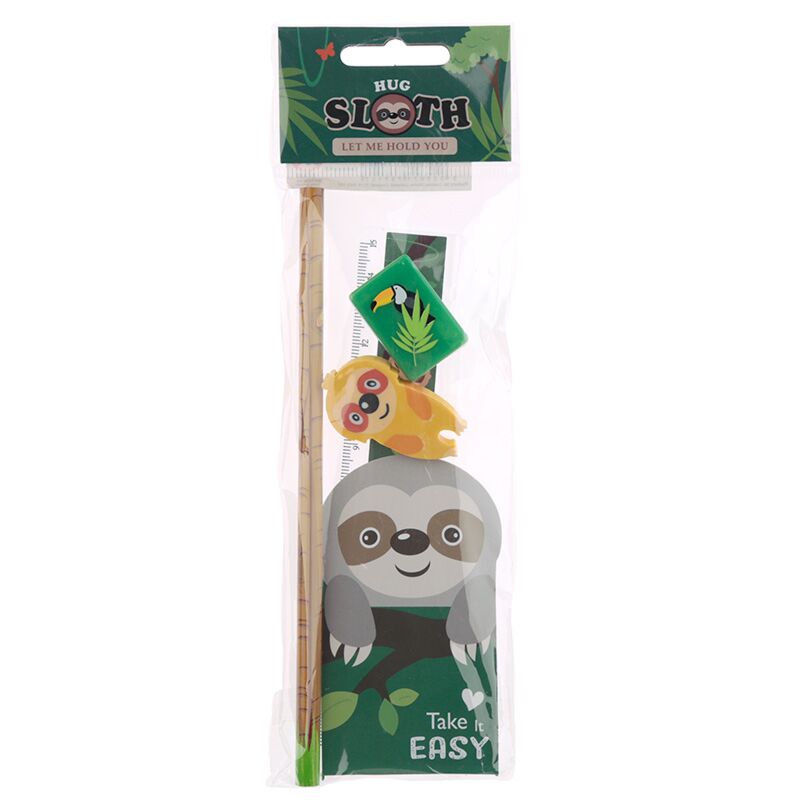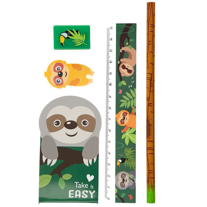 https://www.puckator.co.uk/sta83-sloth-5-piece-stationery-set.htmlSTA83Sloth 5 Piece Stationery Set<p>Sloth 5 Piece Stationery Set</p><ul><li><strong>Material:</strong> Wood, Plastic, Rubber, Paper and Card</li><li><strong>CE/UKCA Marked:</strong> Yes</li><li><strong>Not Suitable For:</strong> 0 - 3 Years</li><li><strong>EN71:</strong> Yes</li><li><strong>Set Contains:</strong> 1 Ruler, 1 Eraser, 1 Pencil, 1 Sharpener and 1 Notepad.</li></ul><p><strong>Product Resources:</strong></p><ul><li><strong>Want to find out more about purchasing from Puckator?</strong> Then read our <a href="/advice-centre" target="_blank" title="Puckator UK Customer Information Guide">customer information guide.</a></li><li><strong>Need more information on stationery sets?</strong> Visit our resource centre and browse our <a href="https://www.puckator.co.uk/stationery-guide" target=_blank" title="Puckator UK Stationery Product Guide with Novelty Pens, Pencils, Erasers & More">stationery sets product buying guide</a> full of useful tips and information on purchasing and selling our products.</li></ul>https://www.puckator.co.uk/media/catalog/product/S/T/STA83_001_1599586288.jpg1.35instock1.351.3500Puckator000https://www.puckator.co.uk/media/catalog/product/S/T/STA83_001_1599586288.jpg/Back to School/Sloth Gifts/DE Only - Geschenke für den Schultüte/School & Office Stationery Accessories2018-07-31T15:21:06+0000No