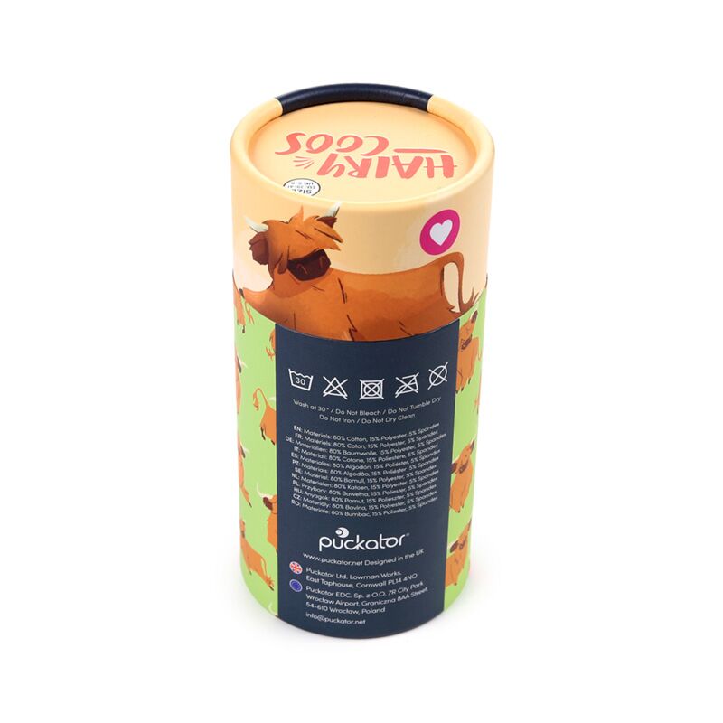 https://www.puckator.co.uk/tsock04-hairy-coos-highland-coo-socks-in-a-tube.htmlTSOCK04Hairy Coos Highland Coo Socks in a Tube<p>Hairy Coos Highland Coo Socks in a Tube</p><ul><li><strong>Material:</strong> 80% Cotton, 15% Polyester, 5% Spandex</li><li><strong>Sizes:</strong> EU 36-39 (UK 3-6)</li><li><strong>Washing Information:</strong>30°</li><li><strong>Suitable for Ironing:</strong>No</li><li><strong>Suitable for Dry Cleaning:</strong>No</li><li><strong>Suitable for Tumble Drying:</strong>No</li><li><strong>Suitable for Bleaching:</strong>No</li></ul><p><strong>Product Resources:</strong></p><ul><li><strong>Want to find out more about purchasing from Puckator?</strong> Then read our <a href="/advice-centre" target="_blank" title="Puckator UK Customer Information Guide">customer information guide.</a></li><li><strong>Need more information on collections and themes?</strong> Visit our resource centre and browse our <a href="https://www.puckator.co.uk/collections-brands-guide" target=_blank" title="Puckator UK Collections and Themes Product Buying Guide">collections and themes product buying guide</a> full of useful tips and information on purchasing and selling our products.</li></ul>https://www.puckator.co.uk/media/catalog/product/T/S/TSOCK04_001_1761833653.jpg2.35instock2.352.3500Puckator000https://www.puckator.co.uk/media/catalog/product/T/S/TSOCK04_001_1761833653.jpg/Beauty Accessories/London & UK Souvenirs/Highland Coo Cow Gifts/Scottish Souvenir Gifts/Novelty Socks & Plush Slippers/Best Sellers2025-06-18T06:49:31+0000No