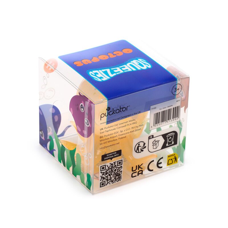 https://www.puckator.co.uk/ty1052-squeezy-octopus-sucker-toy.htmlTY1052Squeezy Octopus Sucker Toy<p>Squeezy Octopus Sucker Toy</p><ul><li><strong>Material:</strong> Plastic (Pet) and Rubber</li><li><strong>CE/UKCA Marked:</strong> Yes</li><li><strong>Not Suitable For:</strong> 0 - 3 Years</li><li><strong>EN71:</strong> Yes</li></ul><p><strong>Product Resources:</strong></p><ul><li><strong>Want to find out more about purchasing from Puckator?</strong> Then read our <a href="/advice-centre" target="_blank" title="Puckator UK Customer Information Guide">customer information guide.</a></li><li><strong>Need more information on novelty toys?</strong> Visit our resource centre and browse our <a href="https://www.puckator.co.uk/toys-guide" target=_blank" title="Puckator UK Novelty Toys Product Buying Guide">novelty toys product buying guide</a> full of useful tips and information on purchasing and selling our products.</li></ul>https://www.puckator.co.uk/media/catalog/product/T/Y/TY1052_001_1766056697.jpg1.35instock1.351.3500Puckator000https://www.puckator.co.uk/media/catalog/product/T/Y/TY1052_001_1766056697.jpg151131532217412181151860418606189141895819225192651954119592/Novelty Toys/Sealife & Aquarium/Sensory & Fidget Toys/Back in stock EU/New EU2025-08-05T07:27:49+0000No