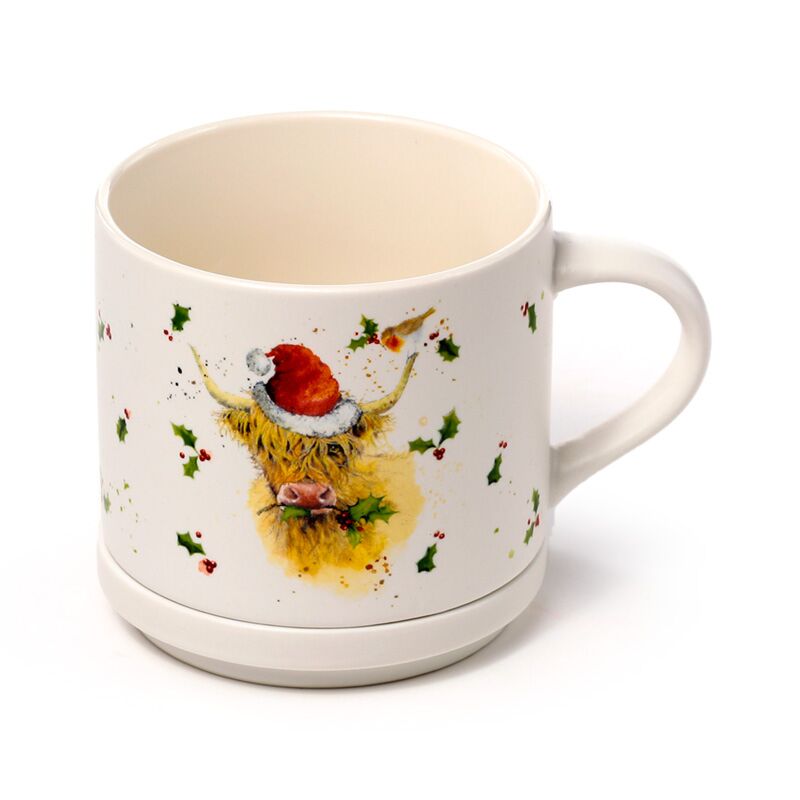 Christmas Jan Pashley Highland Coo Porcelain Mug & Coaster Lid Set