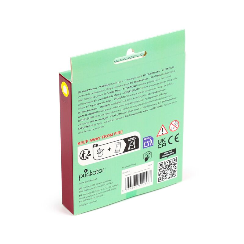 Product Information: Comes with full instructions on how to use. Snap the metal disc to activate the warmer which will stay warm for approximately 30 minutes. This product is reusable.